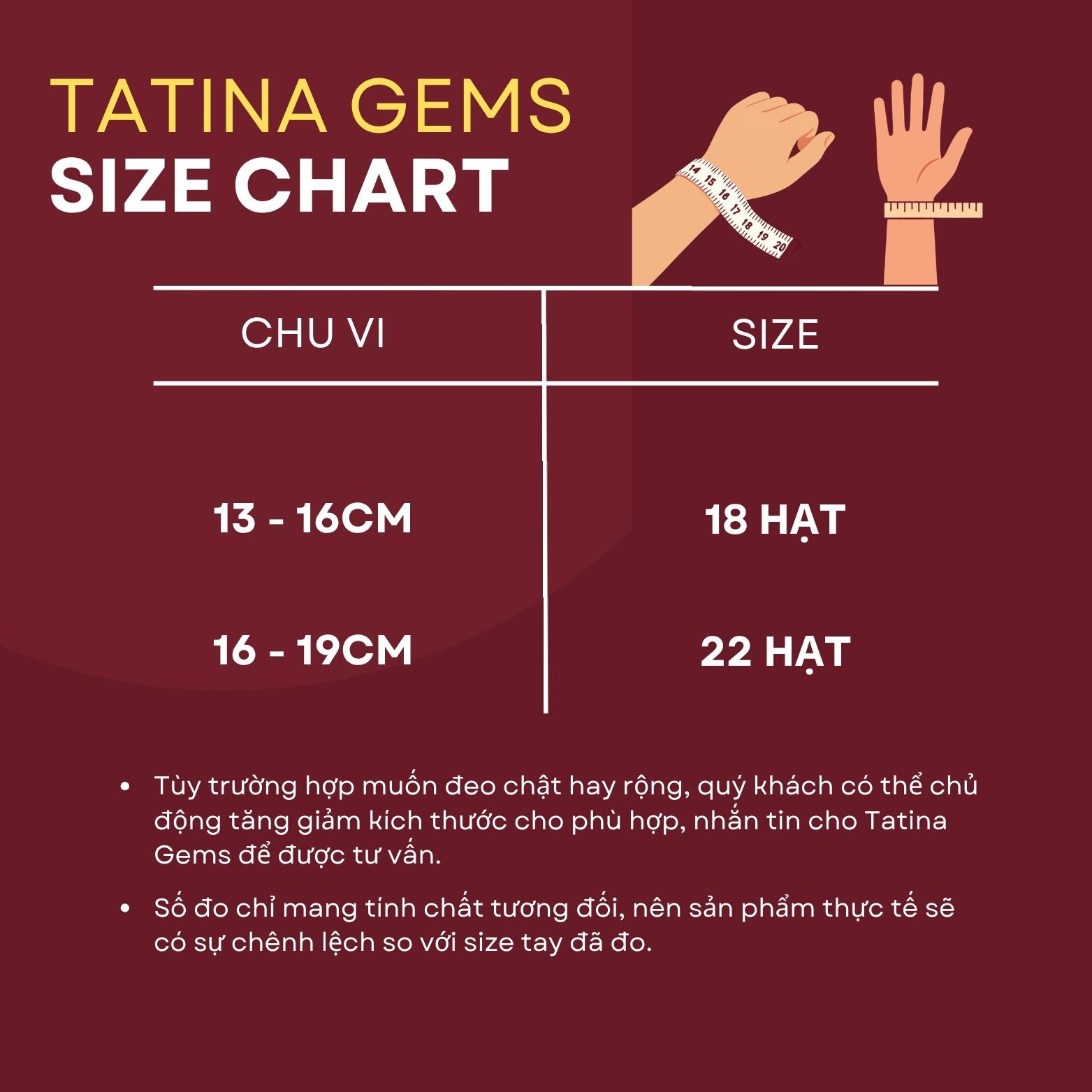 Kích thước hạt: 8mm và 10mm (Kích thước chuẩn, phù hợp cho cả nam và nữ).