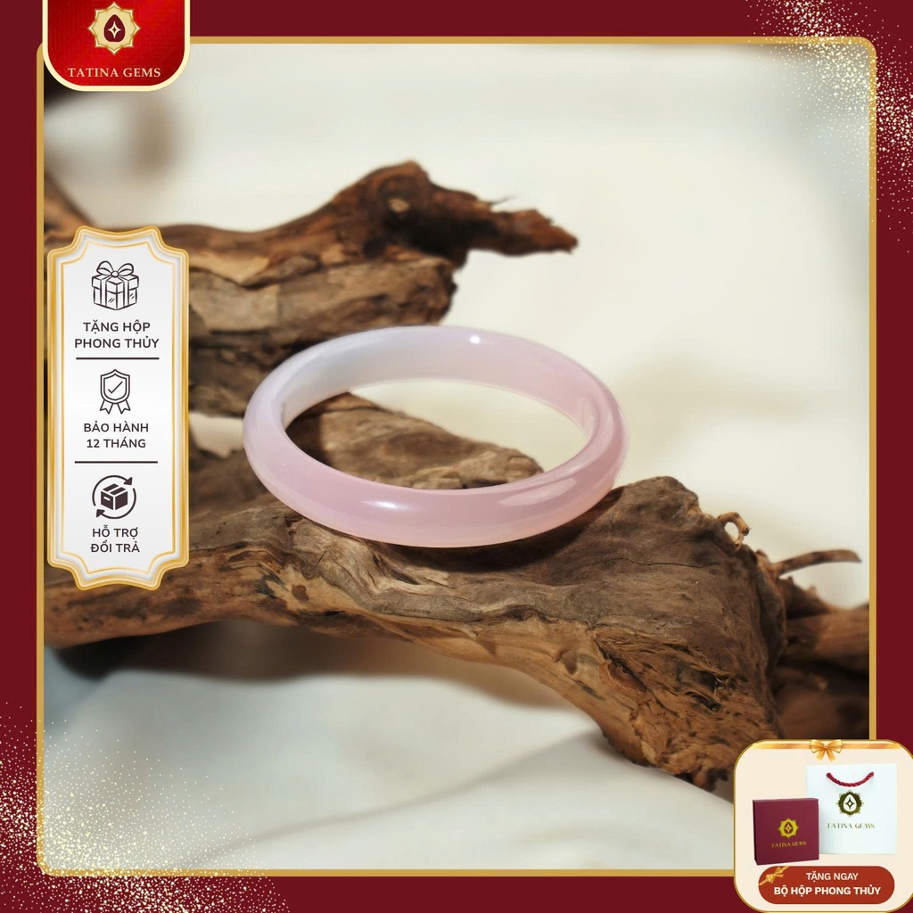 - Chất liệu: Chalcedony hồng băng tự nhiên (Pink Chalcedony / Sakura Chalcedony) - Mã Não Tự Nhiên.